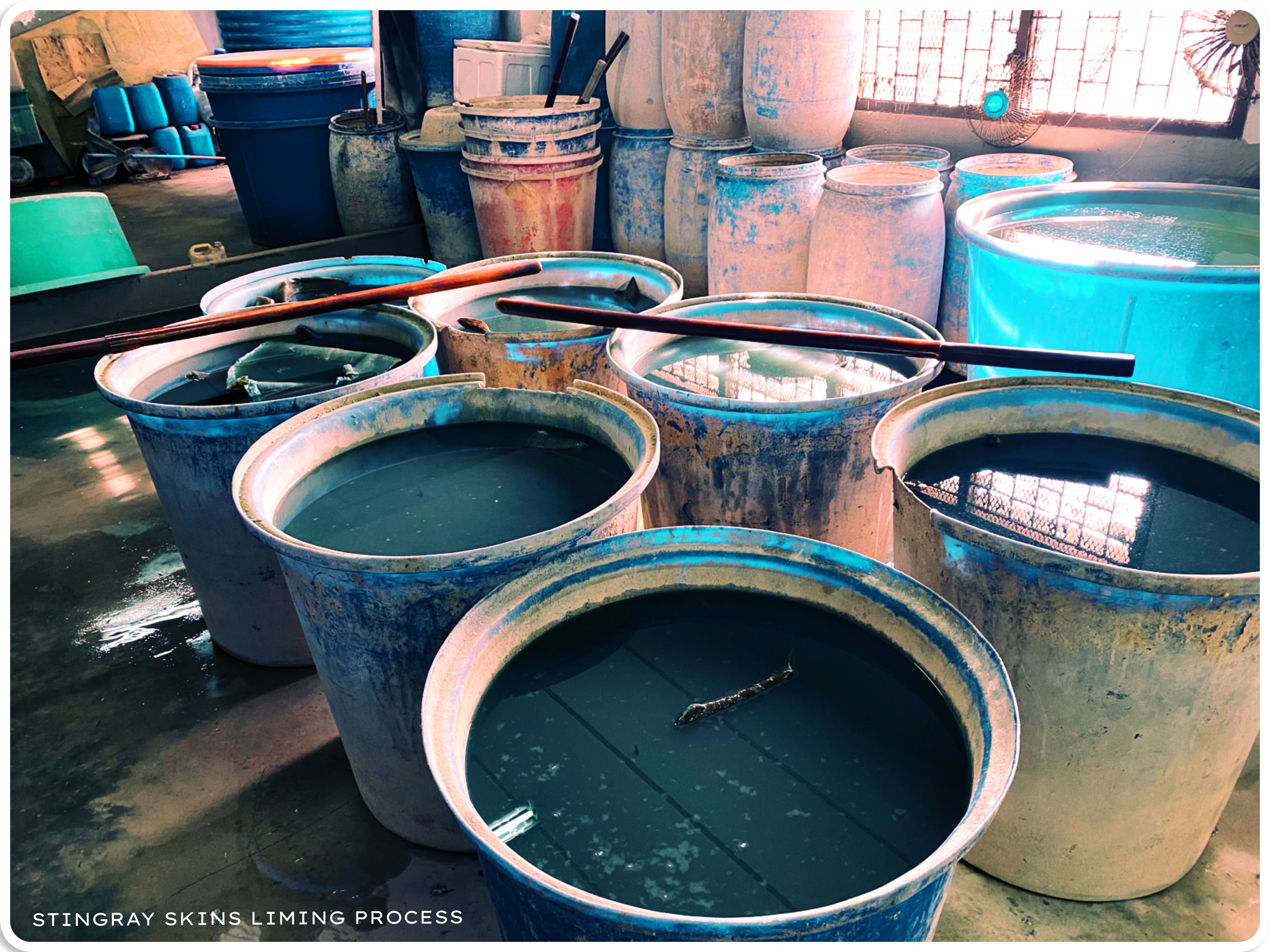 In order to preserved the best qulity out of each raw material, timing on each individual tanning process is very important and percise as even one tiny bit of mistake could lead to a major problem with quality on the whole tanning drum in one whole batch. Our finished skins are developed only from the raw hide (wet salted - dried condition depending on each type of skins), hand picked and carefully selected only the best quality for leather industries from our reliable contracted fisherman which we have locally in the south of Thailand and around the around the Arsean continents. The rich colours and softness, finishing of each order can be adjusted according to our customers specifications.